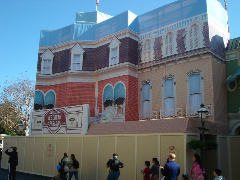 The Plaza Ice Cream facade still under tarps