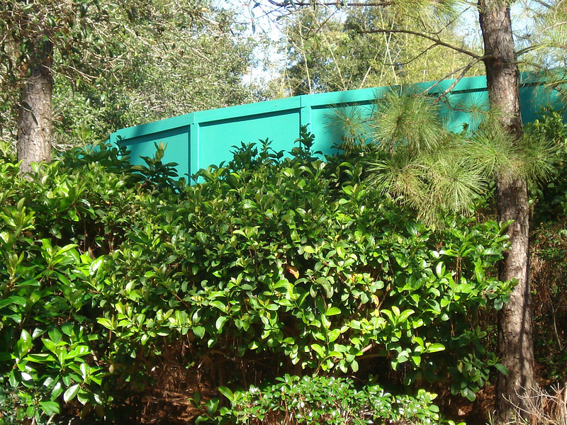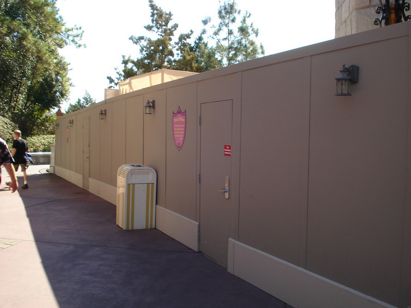 Construction walls rise behind Pooh’s Playful Spot and Ariel’s Grotto
