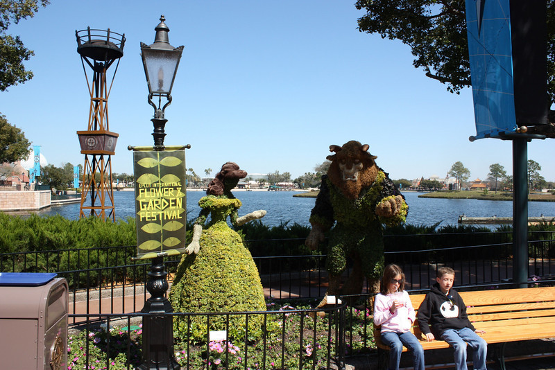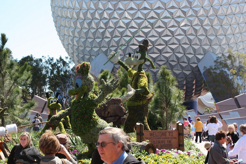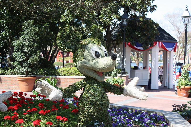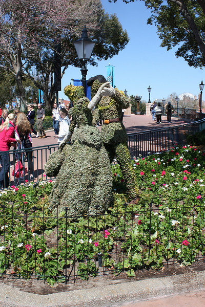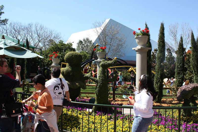 Instead of posting one enormous photo report from our latest trip to Walt Disney World, we decided to break it up a little bit. The 2010 Epcot International Flower and Garden Festival began at Epcot on March 3rd despite an incredibly cold winter in Central Florida. Don’t be deceived by the photos below, these pictures are from this year’s festival, Disney just recycled a number of the topiaries and such from 2009. We hope you enjoy these photos taken by Jose Castillo and Tom Corless: