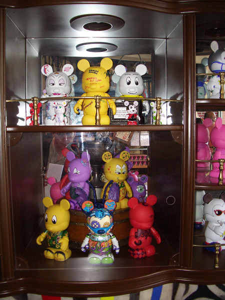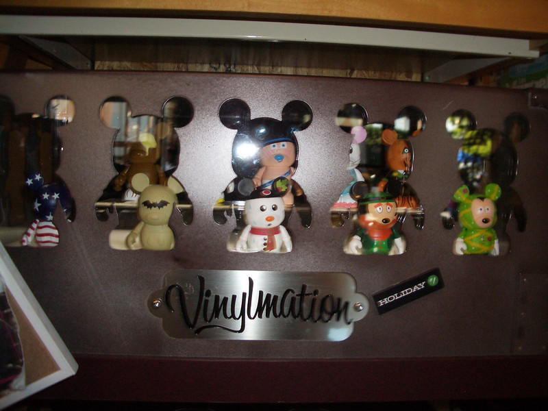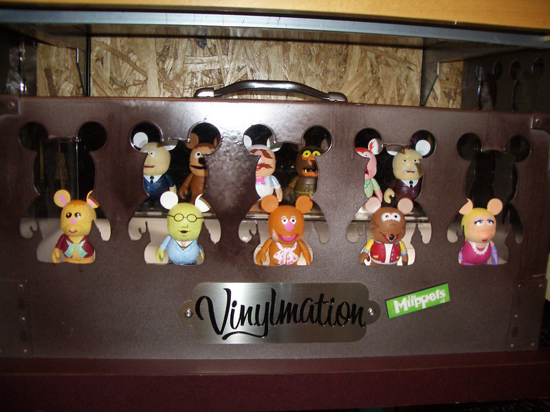 A display case featuring every 3″ design to date, including the yet-to-be-released passholder exclusive Mr. Toad figure