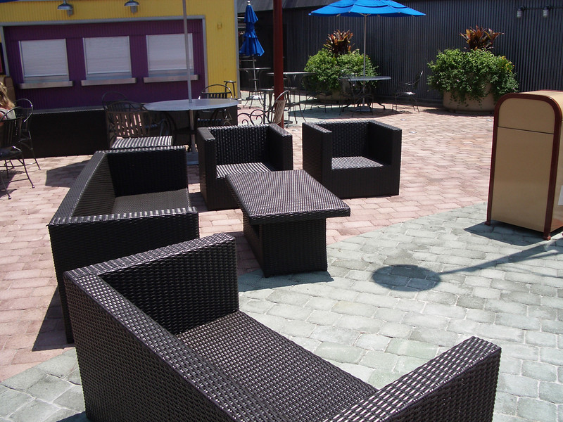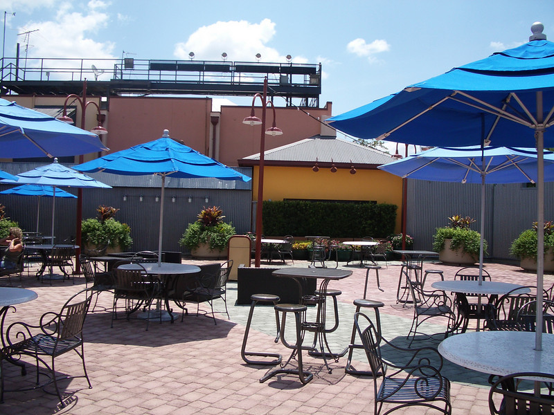 Pleasure Island may be a ghost town, but they have set up a lot of outdoor seating hoping guests will use it