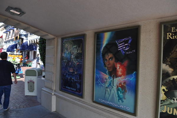 Walking into Disneyland, a Captain EO poster is in the left tunnel