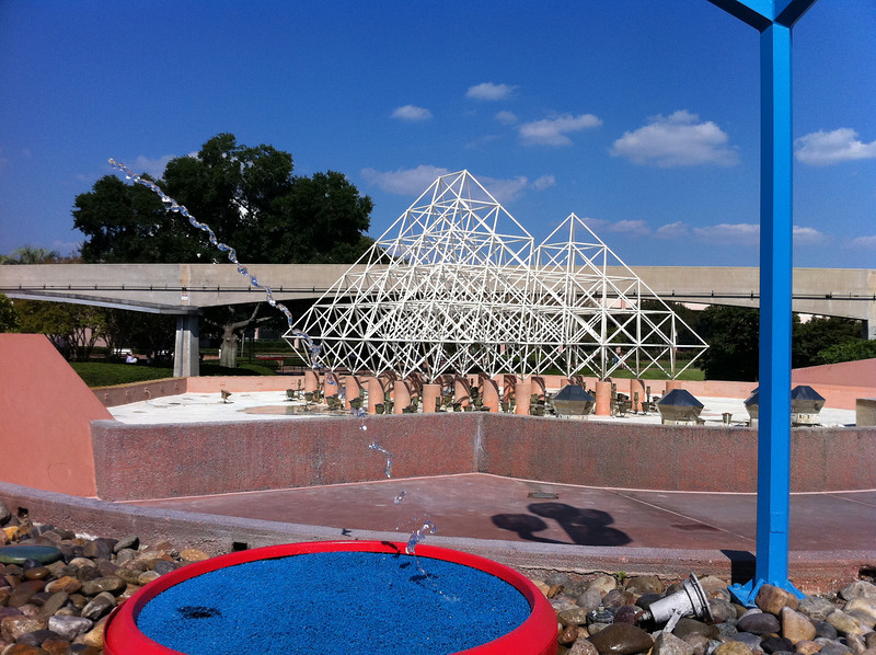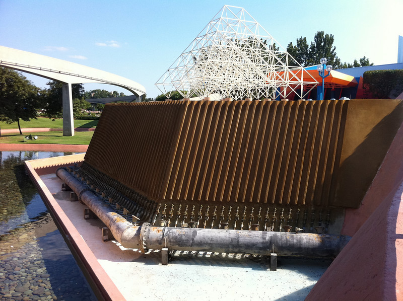 The upward waterfall and upper lagoon at Imagination! are now drained