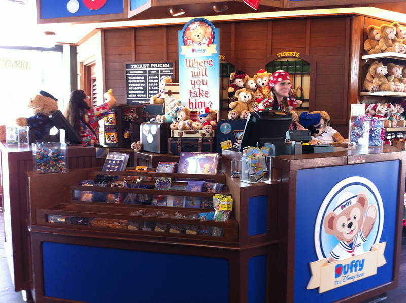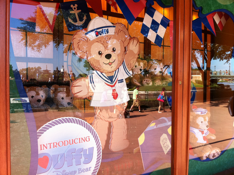 The window display at the International Gateway’s World Traveler store has been “Duffied”