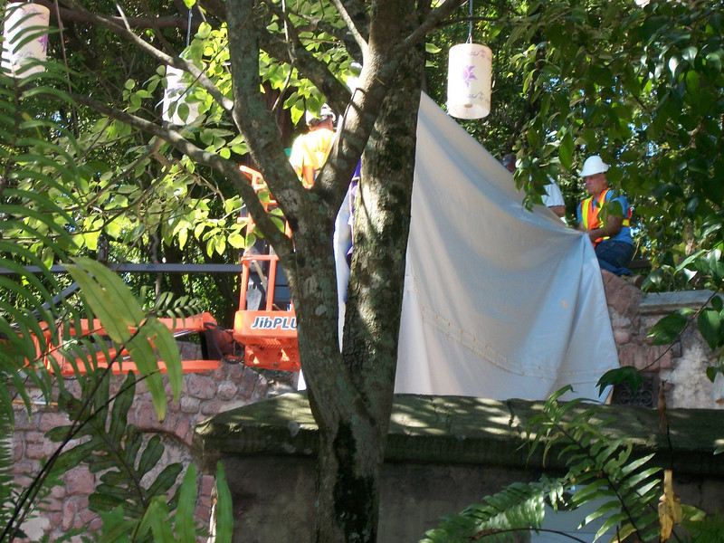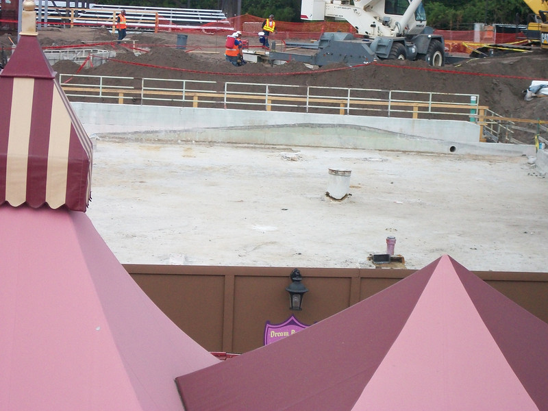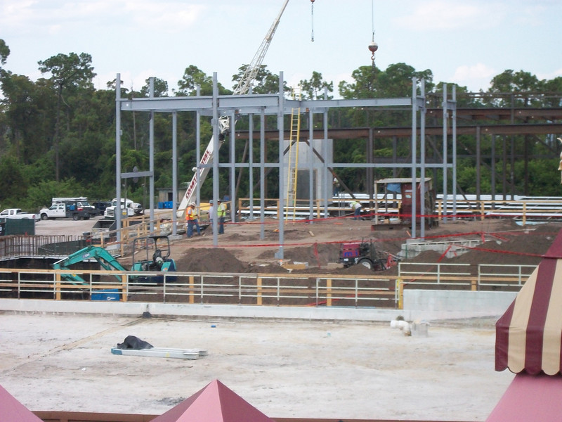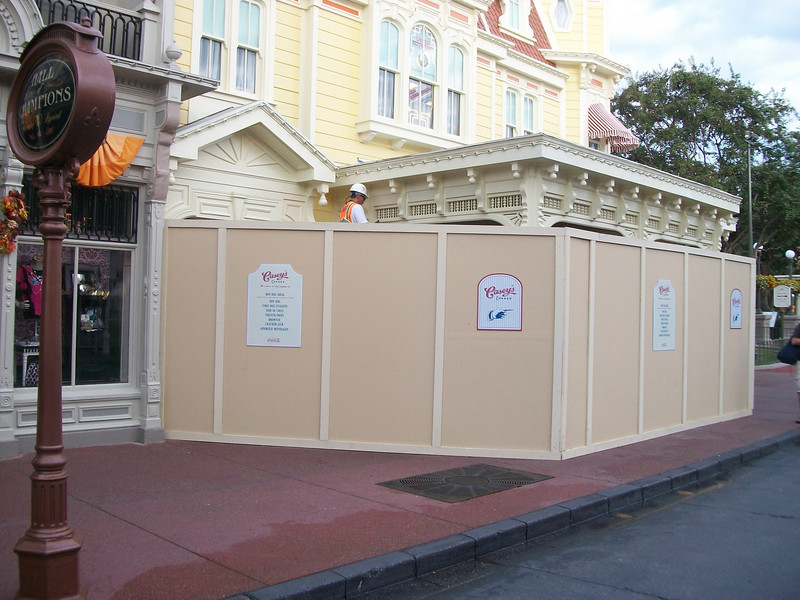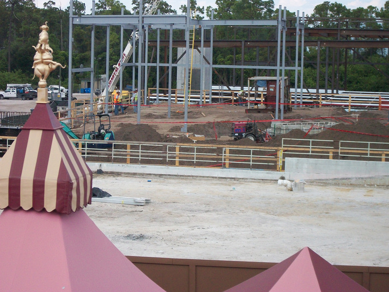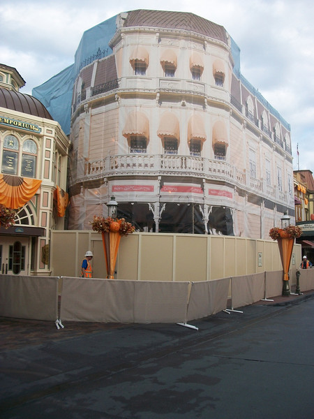 Over to the Magic Kingdom, where the exterior of the Exposition Hall is still being worked on