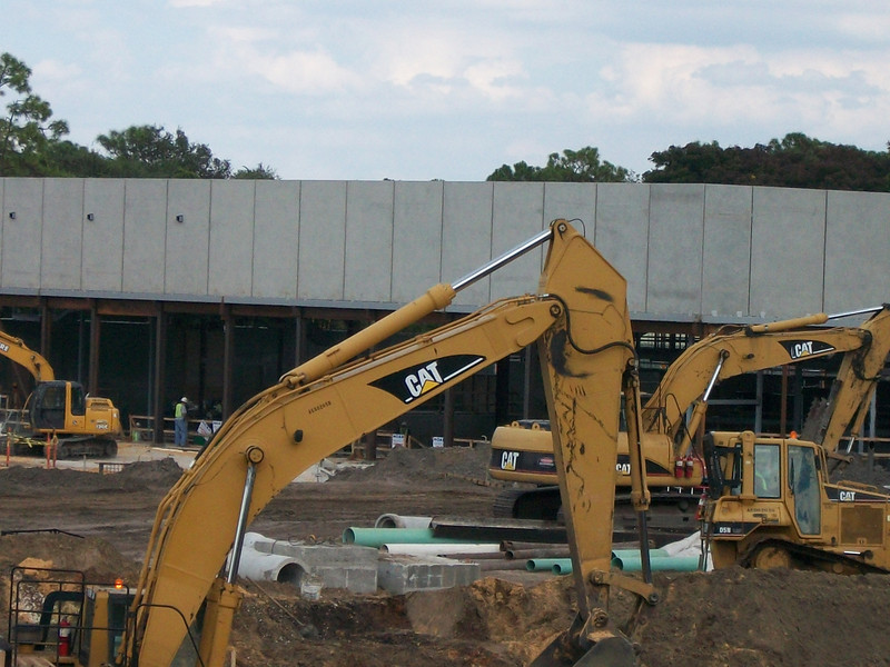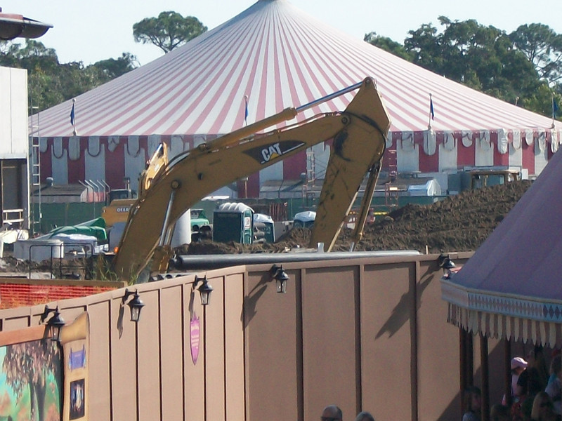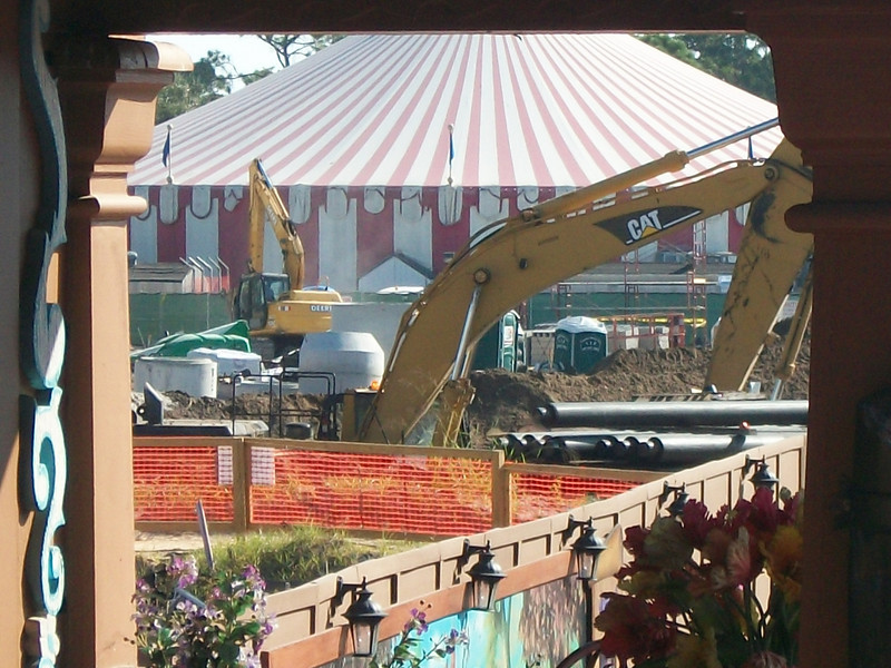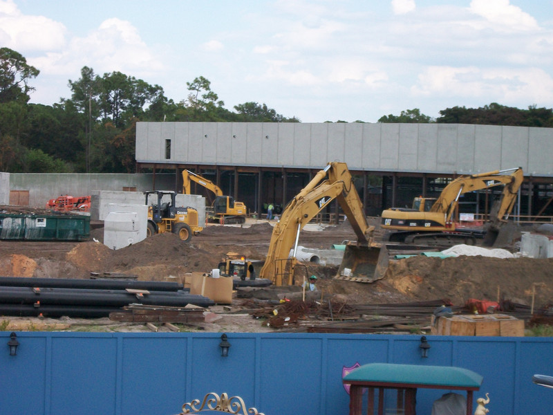 The dirt is still being moved around in front of the “Under the Sea: Journey of the Little Mermaid” building