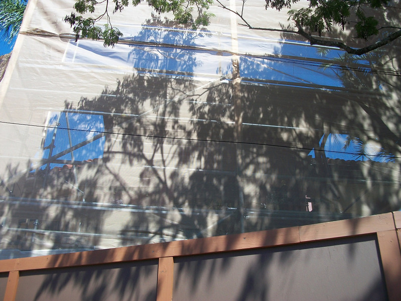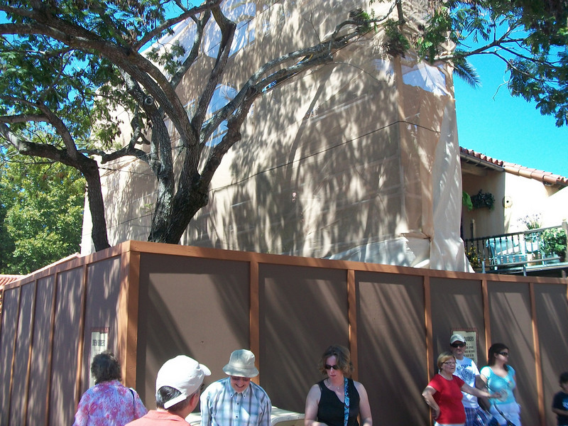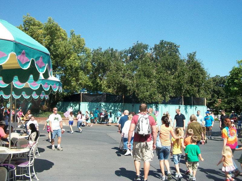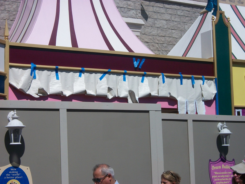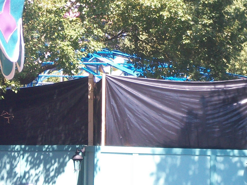 Tarps are now up on the Mad Tea Party walls, making it hard to look in