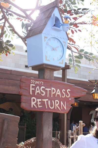 A “Pooh-Coo” clock directs guests to Fastpass return