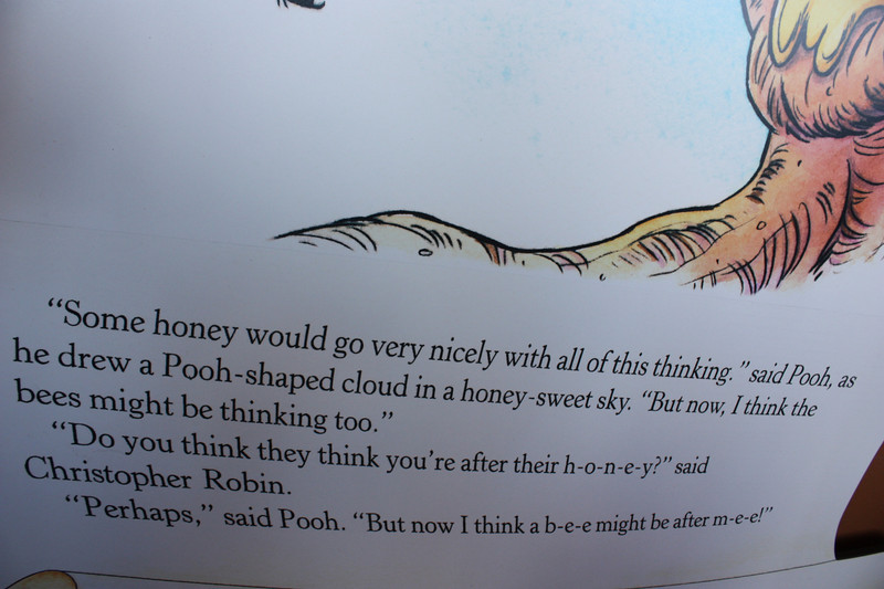 On this page, Pooh and Christopher Robin are playing Pooh-sticks. Unfortunately, there is nowhere in the queue to play this 🙁