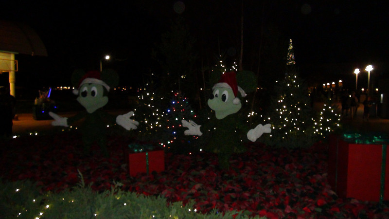 The Mickey and Minnie topiaries are behind the Fountain of Nations this year