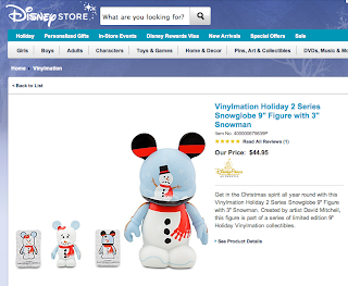 Vinylmation fans can pick up an early Christmas present at the Disney Store Online. The Holiday 2 Series 9″ Snowglobe Figure with 3″ Snowman was released today.