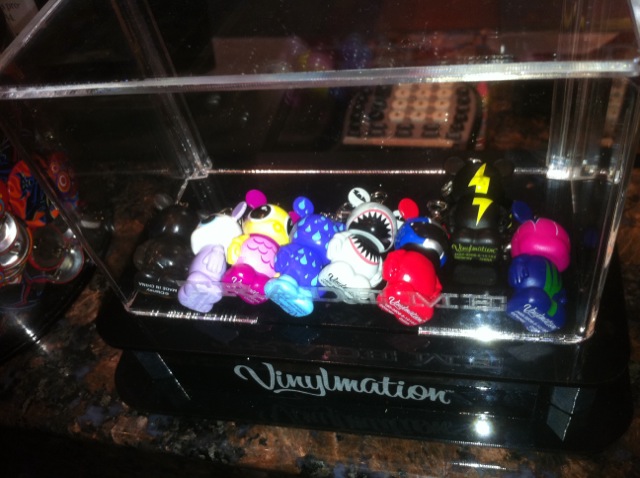 We were at the Festival of the Masters today and we will soon be posting more photos and a new Podcast about our visit, but we couldn’t wait to announce this new fun feature to you. So far it’s only been seen at the D-street story in Downtown Disney, but hopefully it will be expanding soon. One note: trading is the same as 3″ clear box trading, the only caveat is that your Vinylmation Jr need to have the metal keyring-ish clip on top. I’d you got one from the Sports or Oh! Mickey collections that doesn’t have that feature, you can not trade.