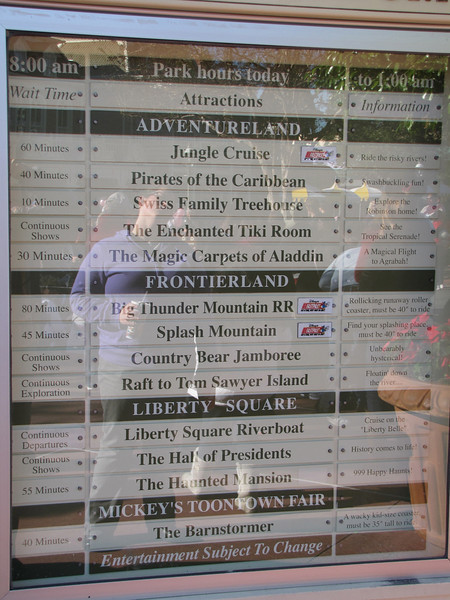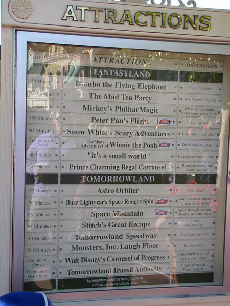 A look at wait times. Some observations: Swiss Family Treehouse has a wait time and Haunted Mansion had a longer wait than most thrill rides