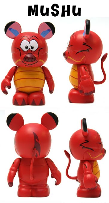 Interesting choice, expanding the body to fit instead of trying to paint a skinny body. Could this have used a “neck” accessory? (I love “neck” accessories!) But we already know from Trade City back in August, Mushu will be the first Vinylmation to have a tail accessory. And come on! They give Marie the hair bow, but then draw Mushu’s horns in front of his ears instead of sticking horns onto the head? It looks kind of confusing.