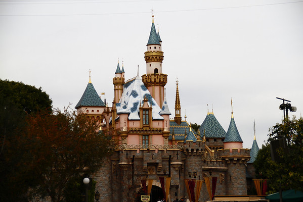 The snow is slowing melting off Sleeping Beauty Castle