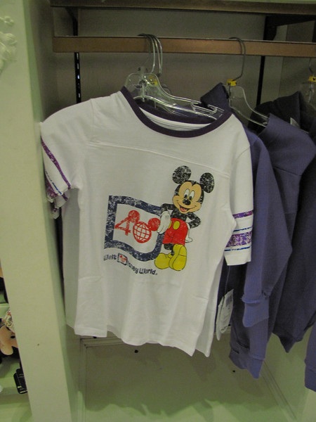 WDWNT Reporter Zach Larson brings us our very first photo report of 2011 with a look at all of the new merchandise celebrating Walt Disney World’s 40th anniversary in 2011. According to our sources, there is a lot more where this came from, this is only the first batch of clothes and collectibles hitting shelves this year to mark the milestone: