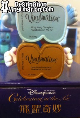 Check out the bottom of each figure. They both say “Hong Kong Disneyland” and reference the “Celebration in the Air” 5th Anniversary Festival. Notice that neither figure mentions an artist. That fact still eludes us. (Also pictured is the platform from the bottom of the boxes.)