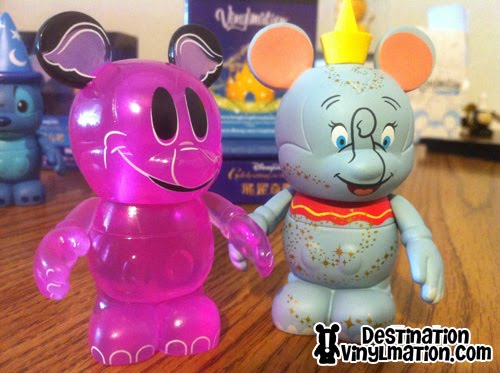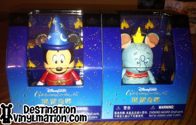 This weekend we got a nice surprise in the mail (well okay, we paid a lot of it, but we’re gonna call it a nice surprise). Our 3″ vinylmations from Hong Kong flew all the way from Asia. Between Dumbo and his feather, and Sorcerer Mickey and his magical hat, they made their way to our homes for some pictures. Check out the picture above, the figures came in the new (and much hated) boxes, we prefer the tins.