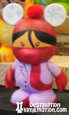 This gal is dressed up for the cold. Look at the snow falling above her head, and while your eyes are up there, check out the cute pompom. This is the officially the first non-vinyl accessory. (The skirt on the Animated 1 9″ Hippo doesn’t count, cause it’s only in the Disney Store NYC and probably a mistake) |