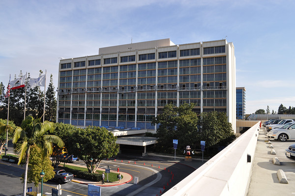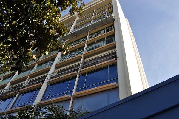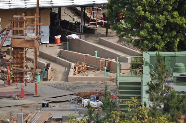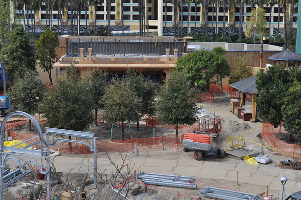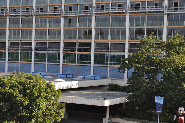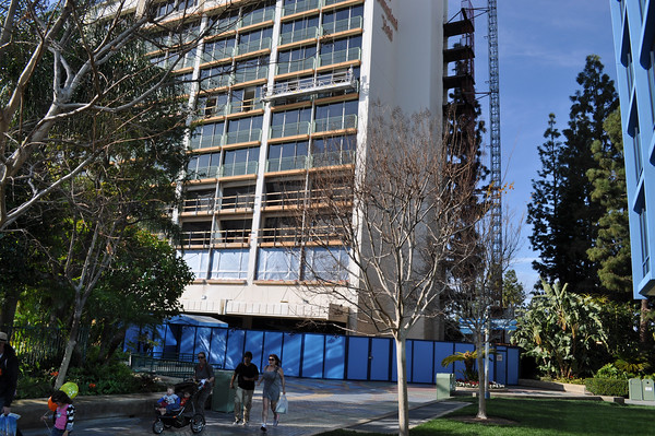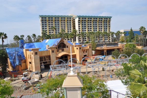 Took a walk over to The Disneyland Hotel, the stairs and support for the monorail slides has been placed