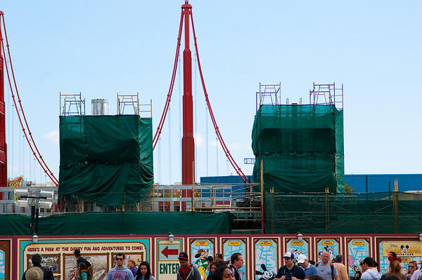 Early foundations have been put up for Carthay Circle Theater. Also, notice that the ElecTRONica stage has been removed.