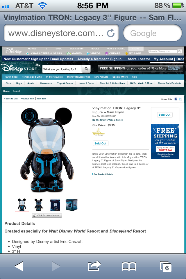 This morning the TRON vinylmation were released online at the DisneyStore.com. All 8 are available as of 4:30 AM EST. Also check out the price. Only $9.95! After last week’s Urban 6 were released at $11.95 it’s nice to see an open box set released at the old standard price of $9.95.