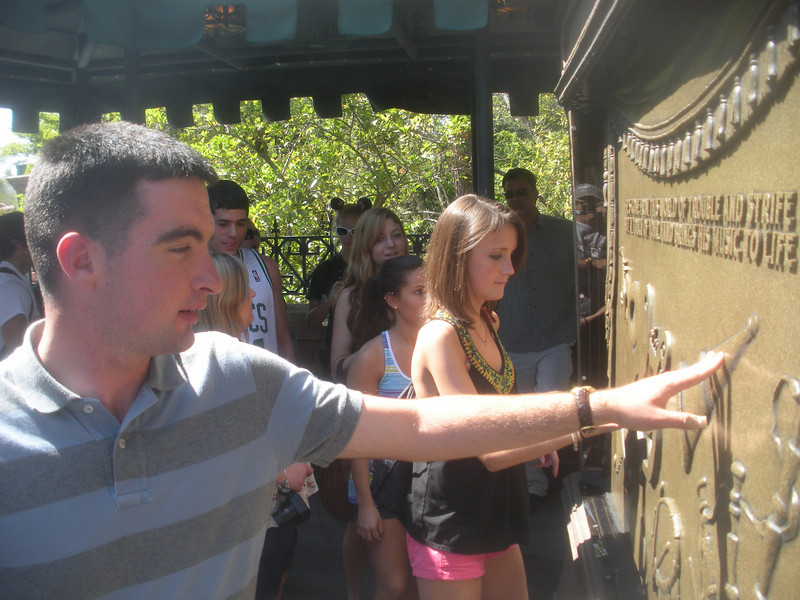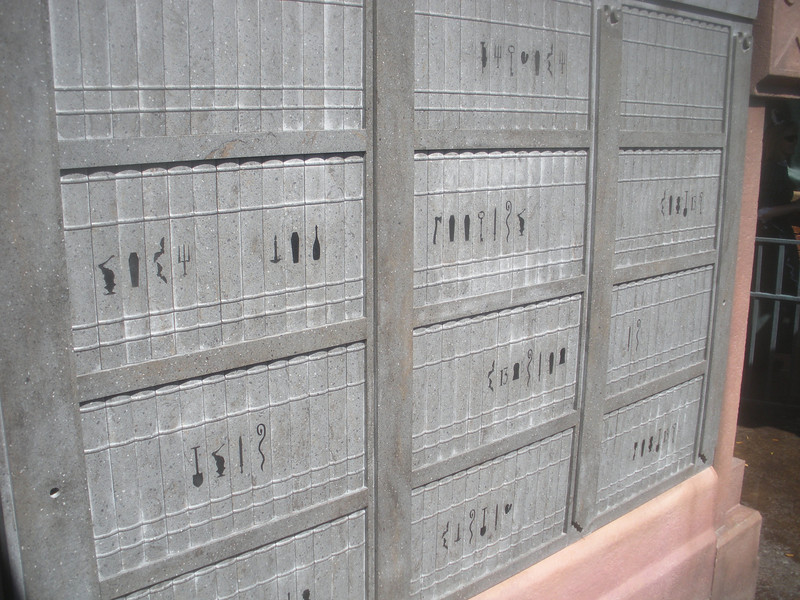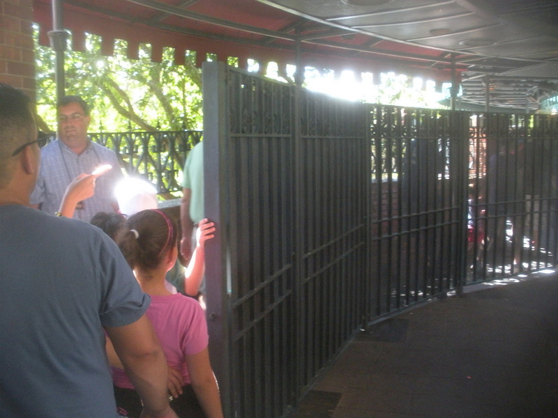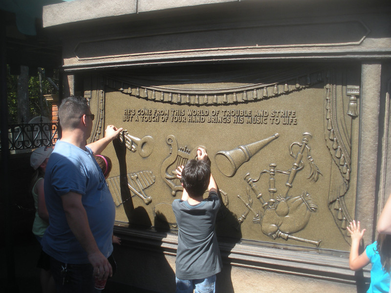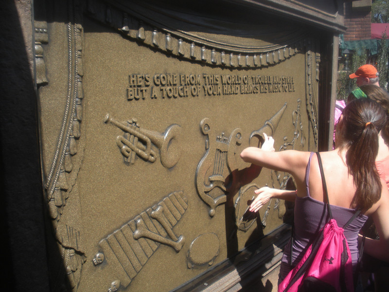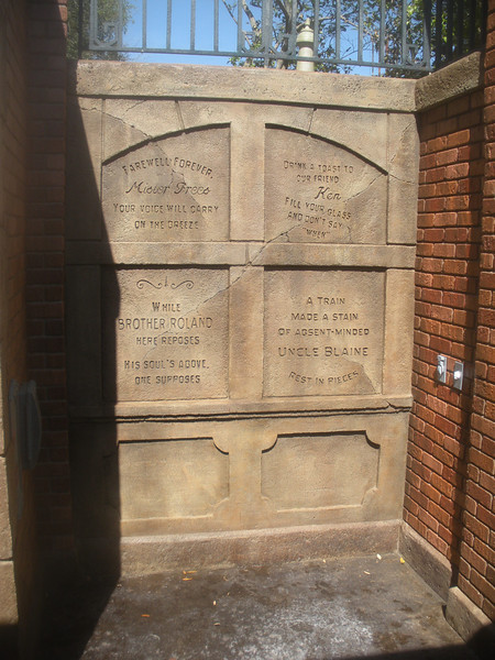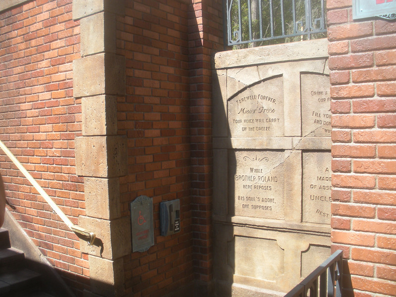 A new door is in place for handicap guests to enter towards the back of the new queue area. Notice the references to Paul Frees, Ken Anderson, Rolly Crump, and Blaine Gibson!