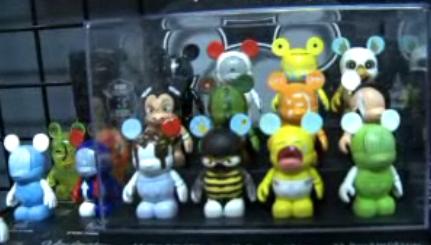 | Update: 2/6/11 A Quick Look From one of the videos on the Vinylmation Event Page, this snapshot shows Urban 6 vinyls. Below is some of the new figures we’ve gleaned from the shot. On closer inspection it looks like the case has 12 figures, making it the set. Starting on the top left of the box, in order, Zipper, Nature Cycle, Sunny Day, and Weird Beak. Middle row from left, Sumo, Cactus, 1337 Mou53, and Side Mouse. On the bottom row from the left, Ice Cream Sundae, Killer Bee, Cry Baby, and Green Thumb. Now that I look at it more, the ones outside the case look like they are variants! 3 of them! Thanks to J we think there are now actually 4 variants. There is a clear orange one next to the yellow one. The only one it seems it could be would be a third version of 1337 Mou53. |