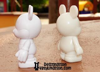 The top of the head is more rounded. Donald says should be able to more accurately translate things like human characters onto this canvas. The ears are more defined, circular and well spaced. The face is also less chubby. Look how it drops straight down on the sides. Again, the theme here is making it easier, not for the artists to design, but for the artist’s true designs to accurately wrap around the 3D vinyl figure. In talking to the artists at the signing, so many designs are altered because they could not be translated onto the original mold.