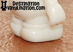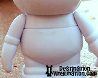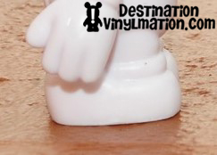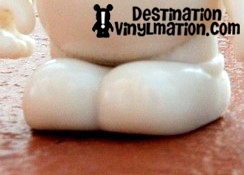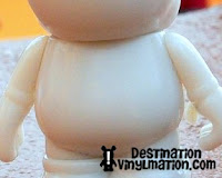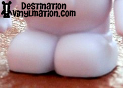 I was able to view a Sea Creature 3″ (first series to be released on the new mold), a blank white new mold, and blank white original mold. Please note, the New Blank Mold is NOT a Create Your Own… we will talk about that later. My first reaction to seeing the new mold in person was a positive one. The most striking feature is the amount of flat, open canvas the artists will be working on. With the removal of the buttons and the facial contours, artists are left with a noticeably broader, flatter canvas. Donald says artists will now more accurately be able to translate their designs from 2D to 3D. Look at these close ups of the body: