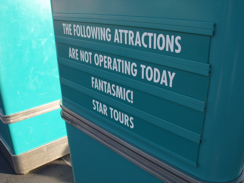 Over to Hollywood Studios, Star Tours is a closed set…