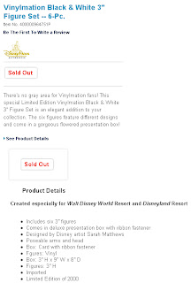 Last week we heard a rumor about a LE set of 2000 called Black and White. The set was said to be by Sarah Matthews, and oddly enough, you are linked to the Disney Store page when you search for “Sarah Matthews disney artist” in Google! Sarah also runs “Orange Blossom Ink” with a fellow Disney Artist, Lisa Badeen. There was much speculation about this set (because the Disney Store page does not have a picture). It turns out that the set won’t be old B&W characters, but a 6 piece set of interesting design patterns in black and white.