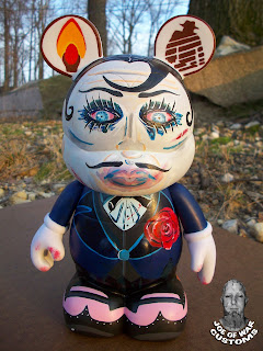 Joe: Creating art on Vinylmation is a lot of fun for me because Disney is deeply rooted in my childhood. I loved watching the Disney movies as a kid, and being able to create artwork in the shape of Mickey now is awesome! Painting on CYO Vinylmation is easy and enjoyable for me due to the soft smooth finish of the blank figures. I will mostly stay true to the Mickey shape, but once in a while I might chop an ear off or add to his shape with sculpting apoxy. A hair dryer and a sharp knife go a long way with soft vinyl!