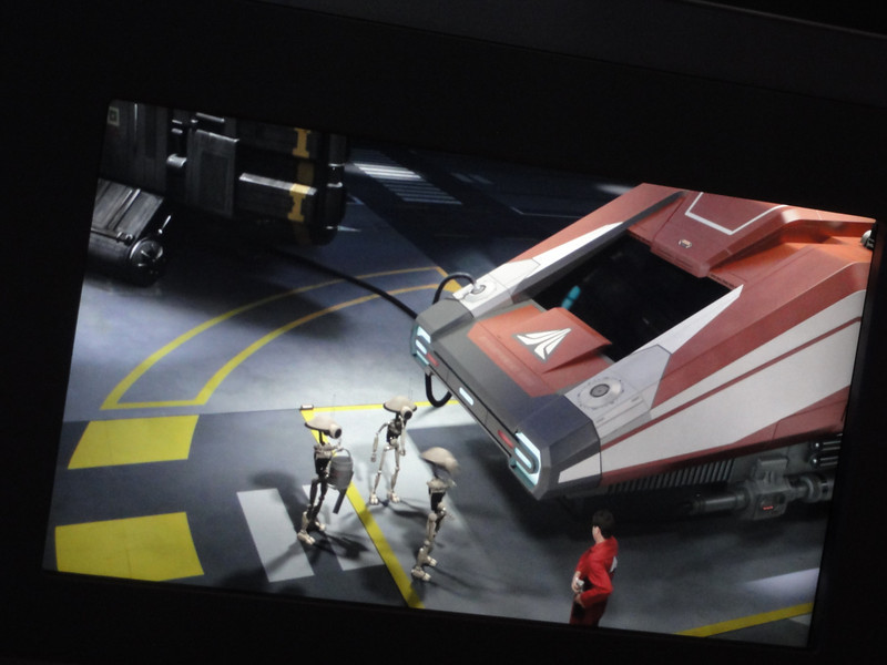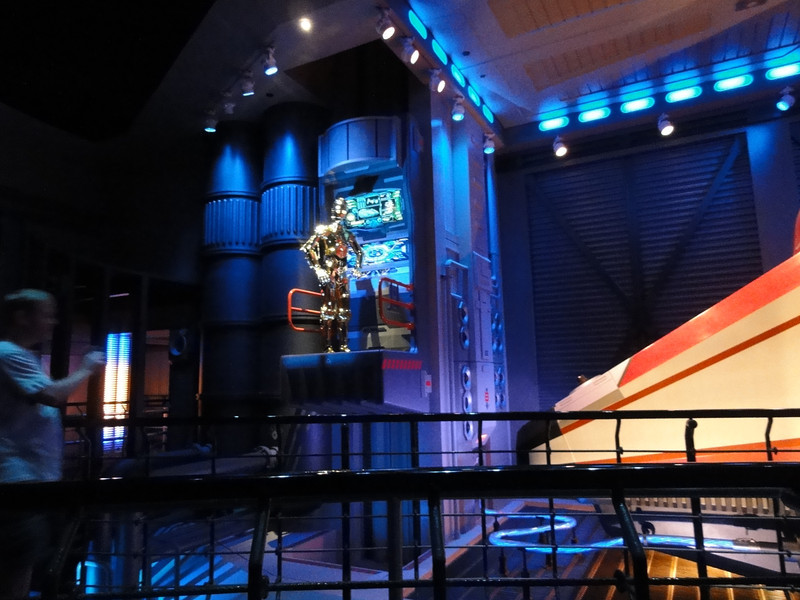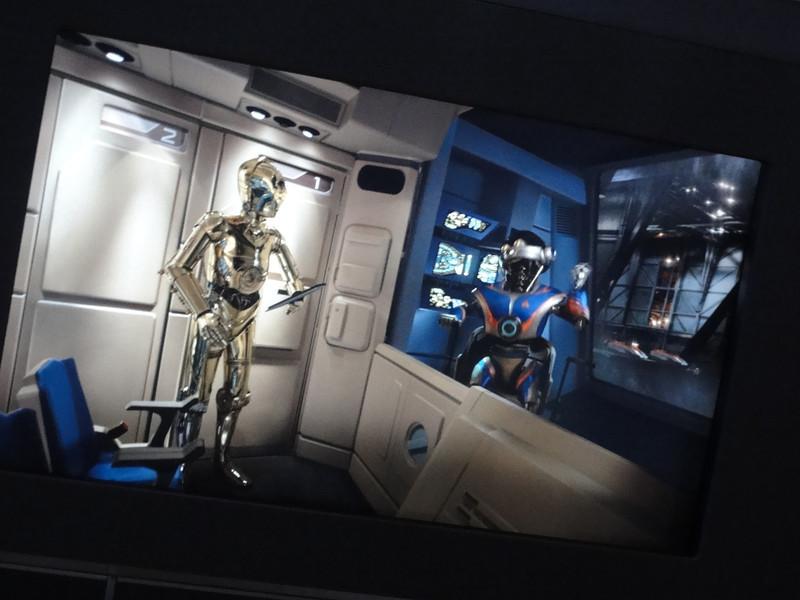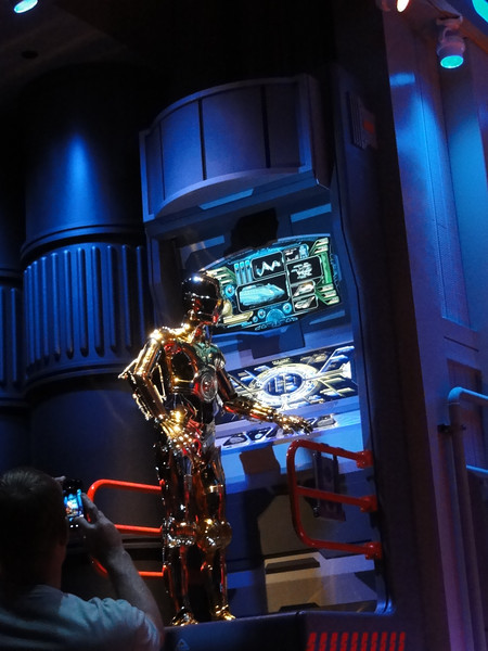 The ride story is set-up perfectly: you get the idea of how poorly Star Tours is operated and see how C-3P0 ends up in the driver’s seat