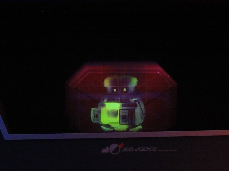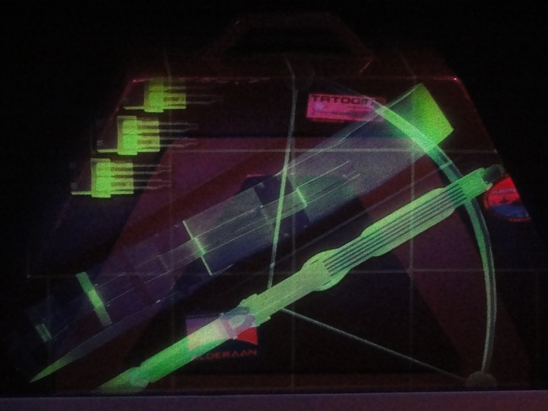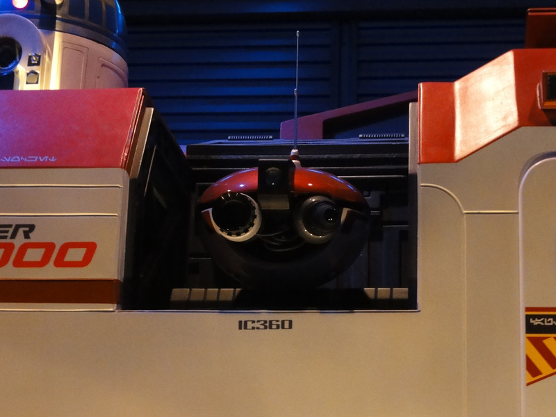 The IC360 droid gets an ad on the board and is used to explain the camera shots on the side screen inside the Starspeeder 1000