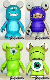 | Mike, Sully, Boo and Smitty from Monster’s Inc. You can test your bravery by meeting these Monsters inside the World Showplace (located between Canada and UK). They are rarely at meet and greats, so this is a great opportunity. You can find a Sully and Boo 9/3 combo in the Park 4 series. Mike can be found in both Park 2 and Big Eyes. | |