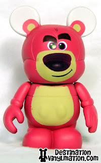 | Lotso from Toy Story 3. This villain will be in the World Showplace (located between Canada and UK). Lotso’s lone Vinylmation is in Toy Story. Mr. Potato Head will also be there. He is Vinylmantionless, but has plenty of toys on the shelf in his own right. | |