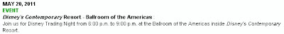 May 20, 2011 – 6:00 p.m. to 9:00 p.m. Disney’s Contemporary Resort – Ballroom of the Americas