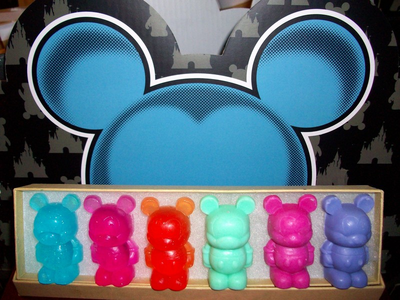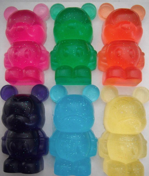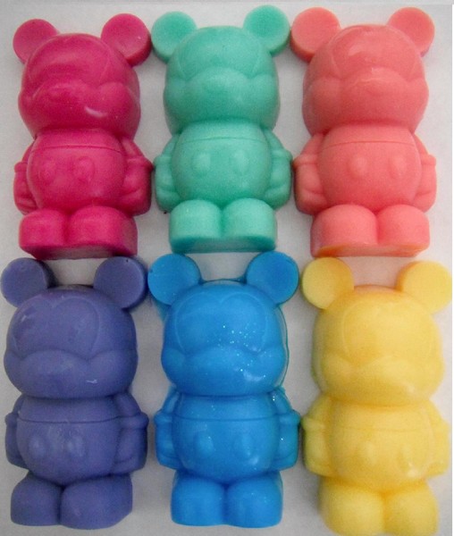 | Today we feature a special custom Vinylmation. Remember those Ice Cube trays released awhile back? Well one Vinylmation Collector is using those trays to make Vinylmation Soap. Her name is Claudia (not the Claudia with the Mickey and Minnie Customs). We caught up with Claudia at the last event and she told us all about it. And if your interested in purchasing some, her contact info can be found below. |