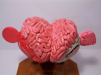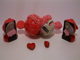 The lungs, intestines, brain, ear brain, cartoony heart, and realistic heart were sculpted with Aves Apoxie. Rare earth magnets about 1/16 of an inch can be used to interchange the cartoony and realistic heart like an accessory.