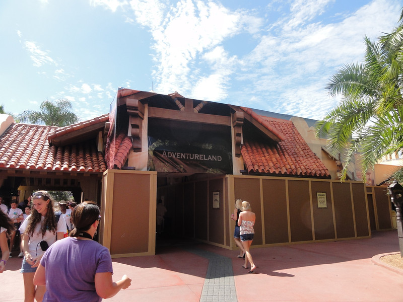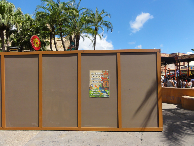 Scrims and construction walls up in the passage between Adventureland and Frontierland