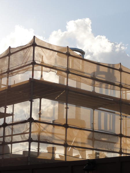 The Pecos Bill’s facade is still behind tarps