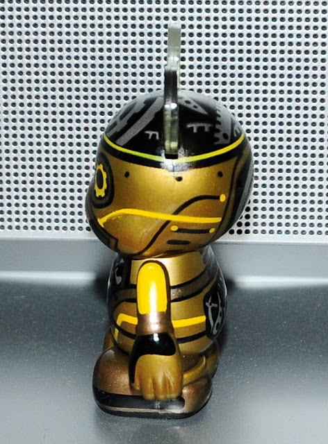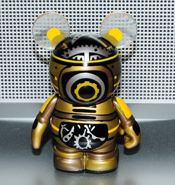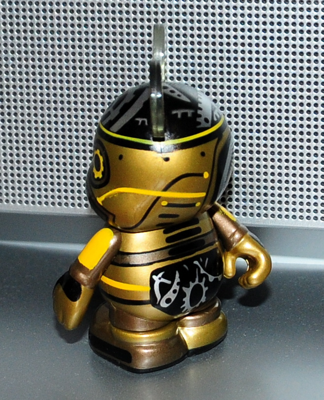 On this figure, the printing is perfect. Say what you will about the altered shape, but I will take designs like this any day. This particular figure doesn’t have much detail, but design lays out well on the Vinylmation. However, after seeing the gears on the Steampunk series, this design falls short of those. The mismatched eyes are cool. And the gold on this figure is very true to what you’d expect to see on a metallic figure.