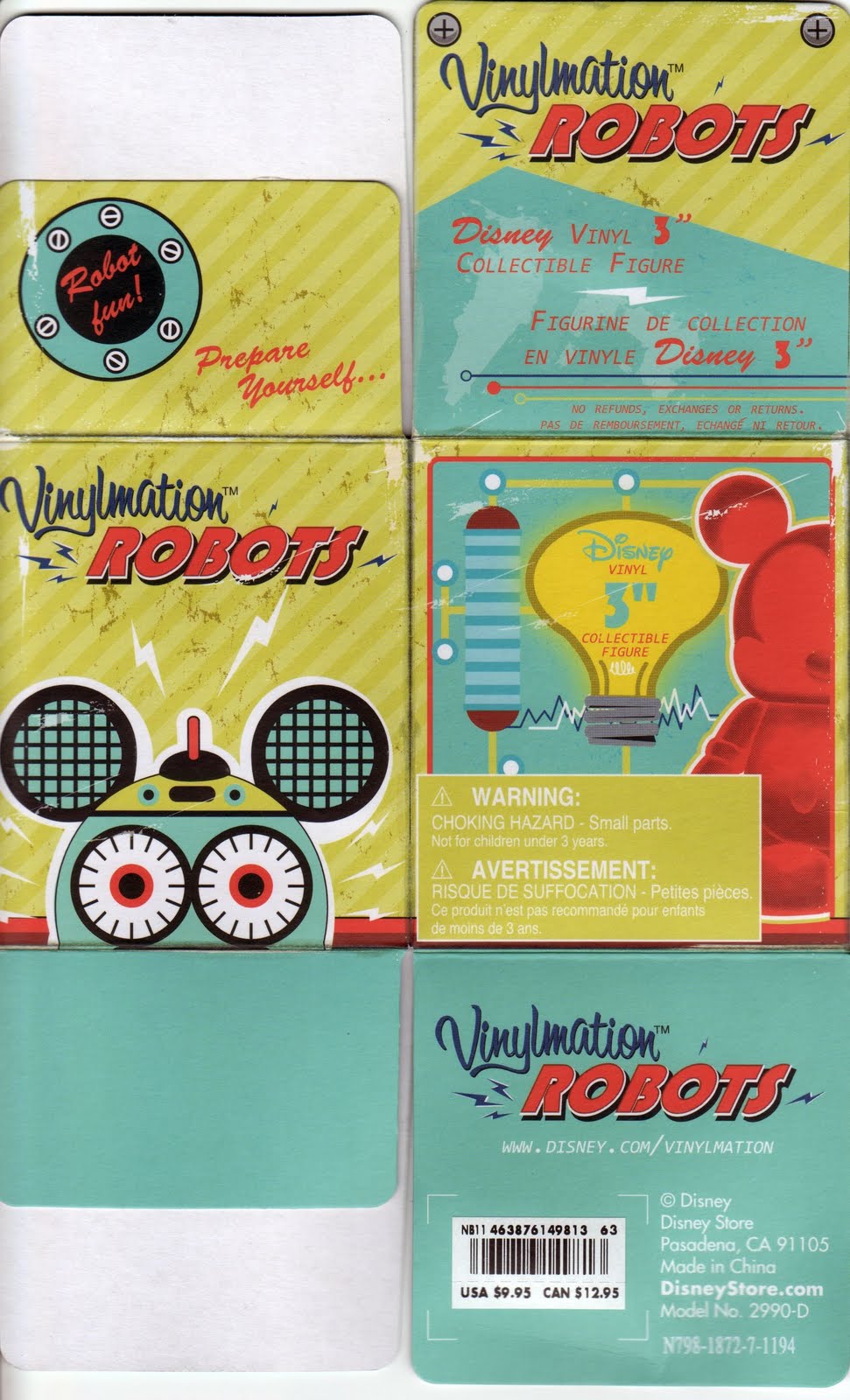 On July 22, Disney releases the Robot series of Vinylmation. We have talked the past few days about what’s in the box, but today, we will show you the packaging. The design is absolutely brilliant. This series is based on Robots from the 1950’s and ’60’s, so both the tray and blind boxes have a very vintage Sci Fi feel.
