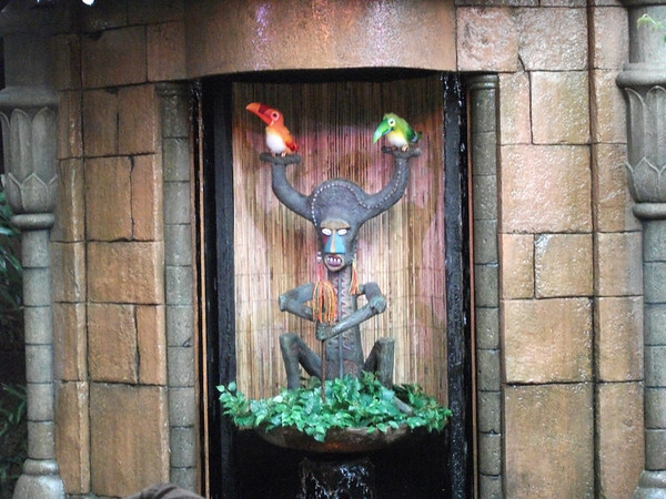- The enchanted fountain is not mentioned, and in its place is a very light smoke effect that shoots up to retrieve the bird mobile. It also shoots out smoke when the Tiki Gods are angered