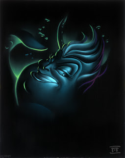 Us here on the East Coast will be able to see the artist Noah tonight at Room For One More and tomorrow at the Diamond Horseshoe (full WDW schedule here)… West Coast fans will get their next chance on October 15th. That’s the date Noah releases his original Villains portraits, his line of Villains Lady’s fashion tees and LE Villains Vinylmation at Vault 28 in Downtown Disney District at Disneyland. The release begins at 8am.