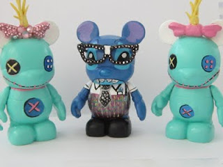| DV: Have you do any designing with vinylmation other then the Jrs necklaces? If so, which other ones are you favorite? SB: I have designed several 3 inch Vinylmations. All of which I use Swarovski crystals on them. I modeled them after my after line as well. I have also made 2 9 inch vinyls. My favorite so far has to be my newest 3 inch vinyl of Rapunzel. She is not fully completed but is about 95% done. My second favorite is a Scrump Doll (from Lilo and Stitch) which I made over the summer. |