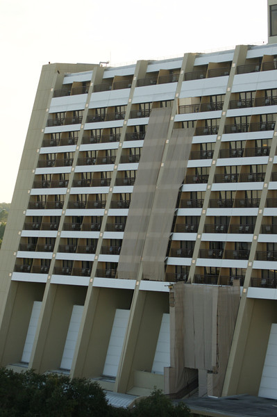 We take a trip outside of the Magic Kingdom to see Fantasyland from above. We find that the facade of the Contemporary is being worked on.