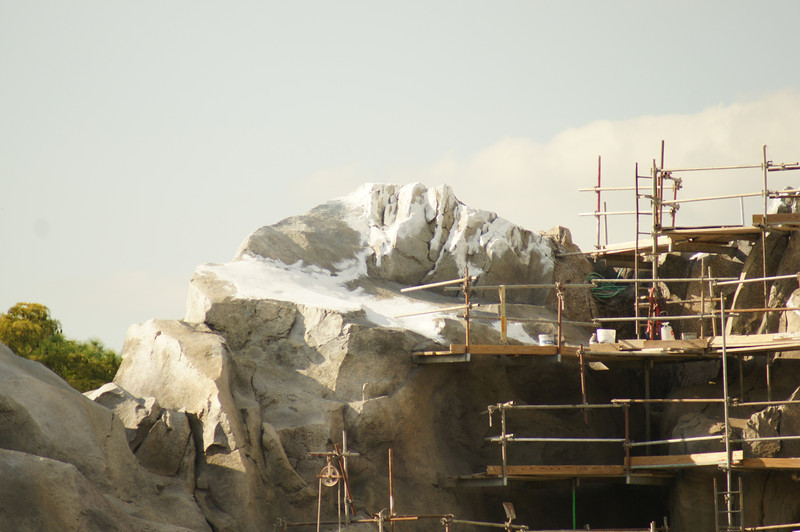 “Snow” has been painted on the top of the peaks of the Beauty and the Beast realm