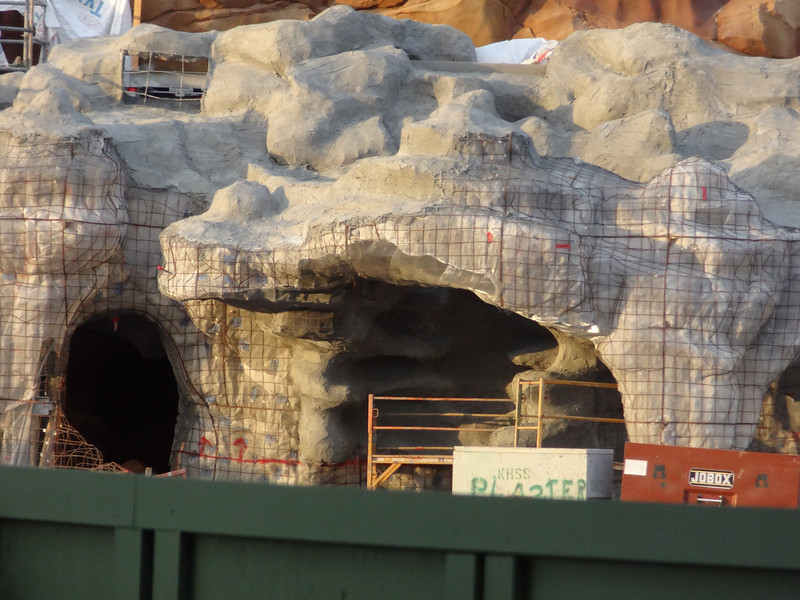 The lower level rock-work taking shape at Under the Sea: Journey of the Little Mermaid